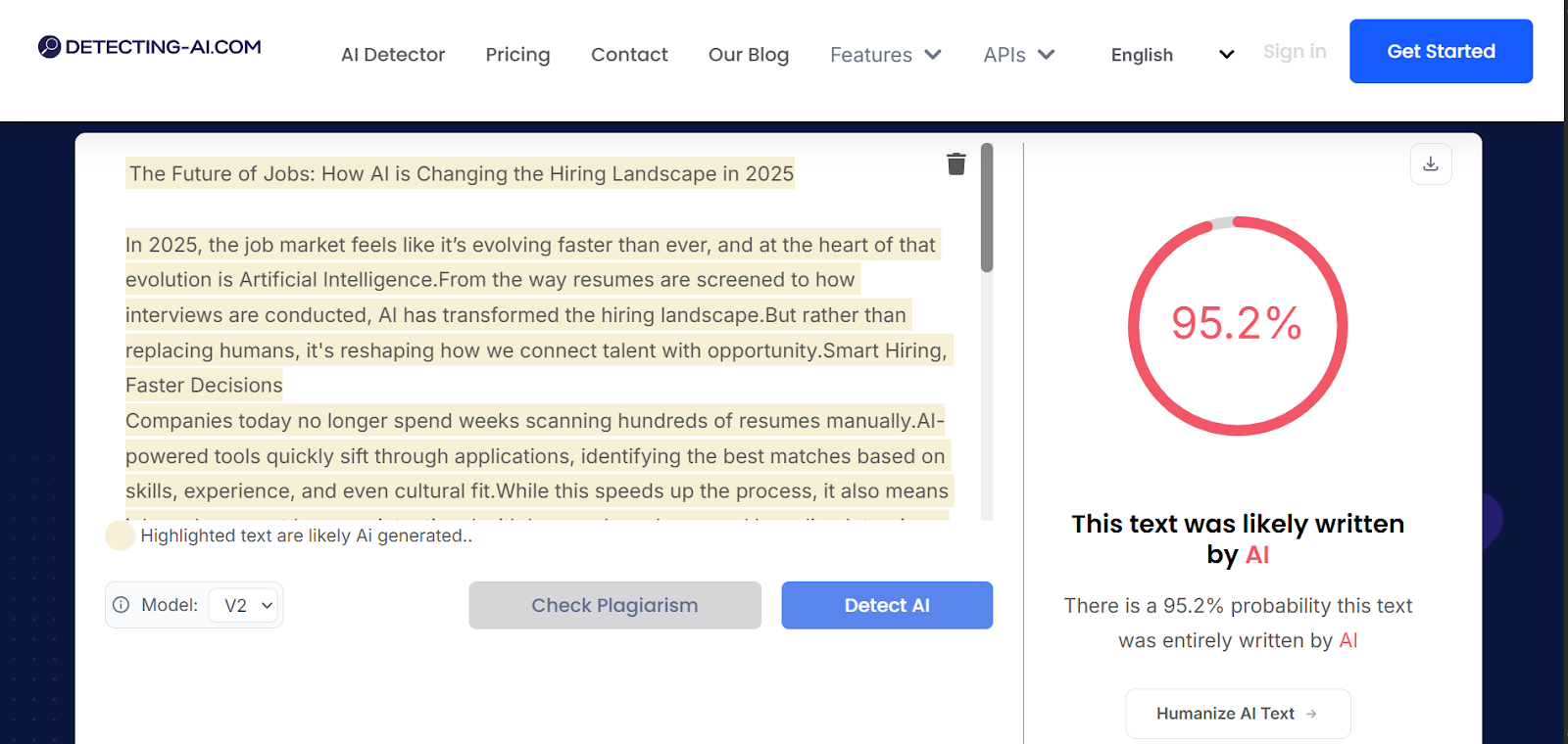 However, based on testing, Detecting-AI is better as a signal provider than a verdict engine. It works best when paired with human review or secondary checks.