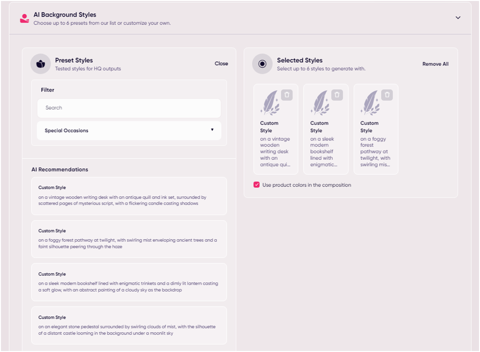 - AI-generated product backgrounds