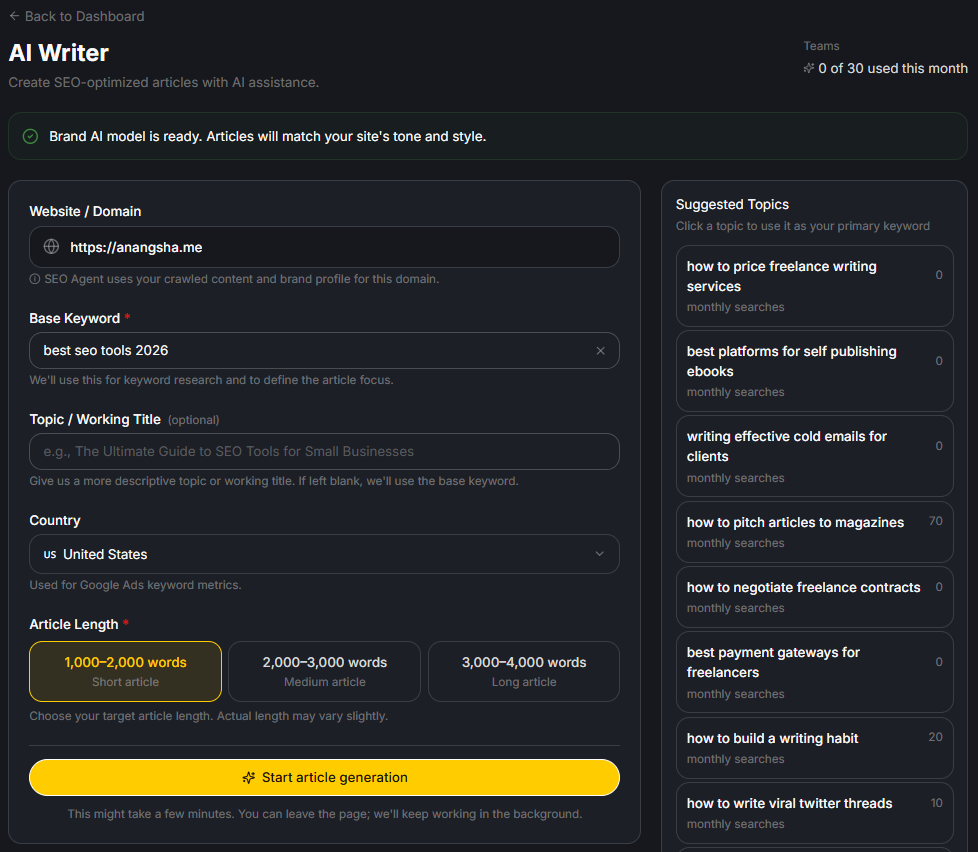Some platforms make it easy to go fully hands-off: research → write → optimize → publish.