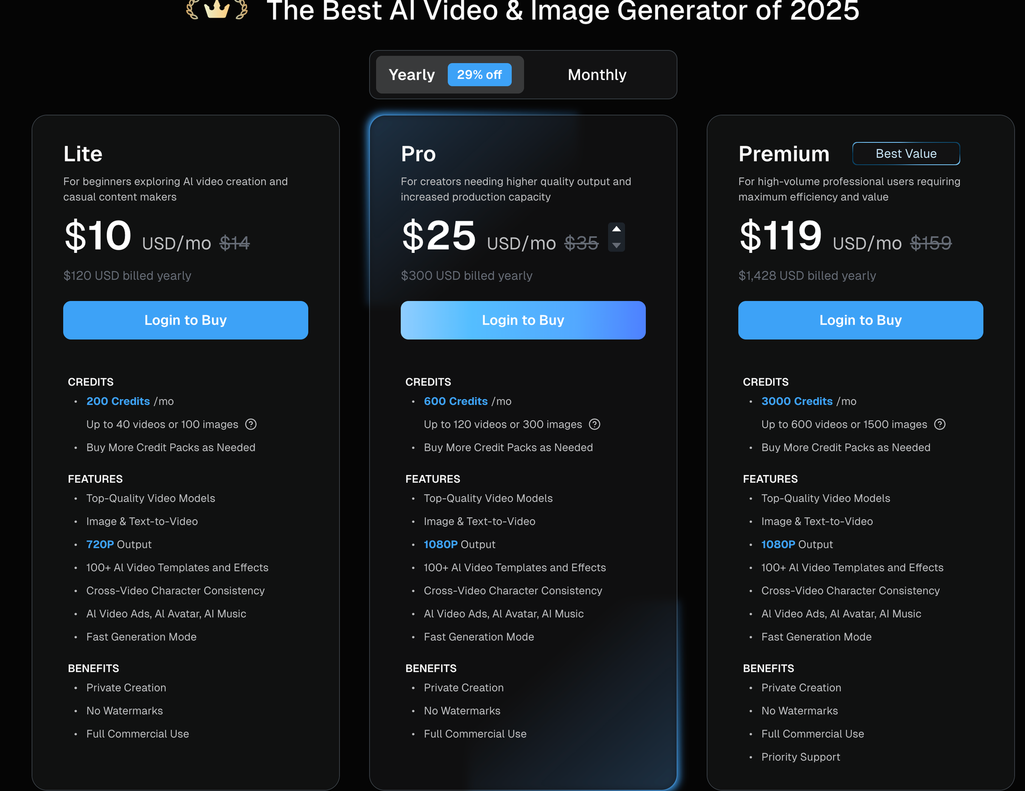 When you first land on an AI video tool’s pricing page, almost all of them look reasonable. Some start as low as $9 per month, and make you feel unlimited video generation is possible.
